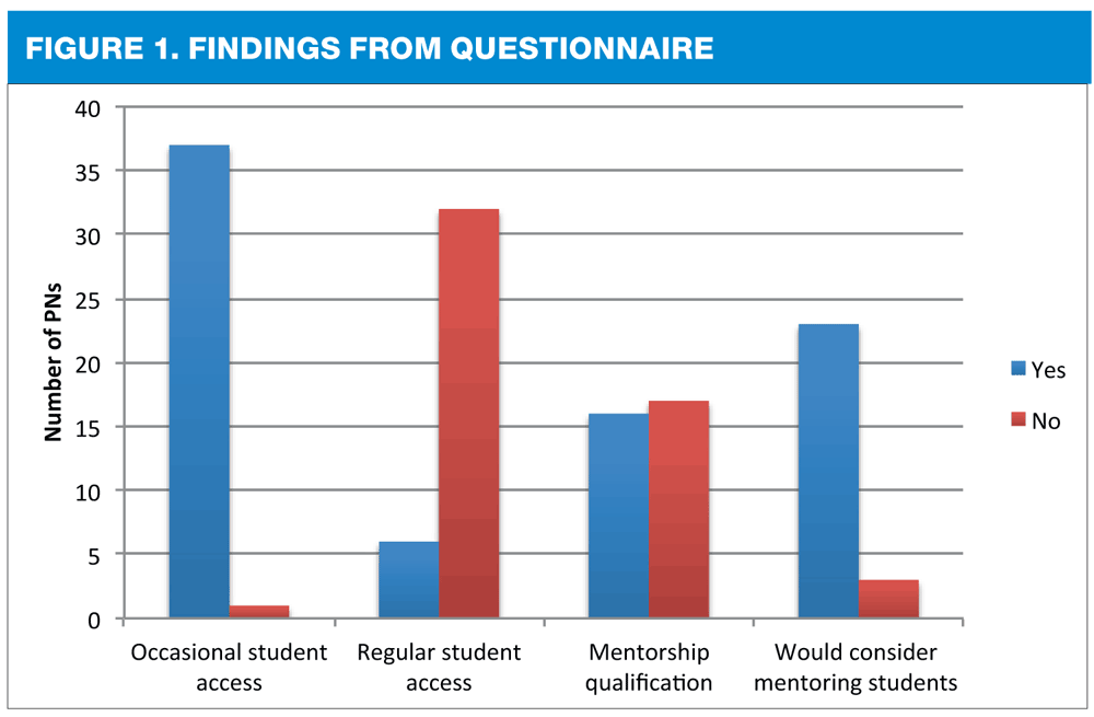 An overwhelming majority (73%) found the experience to be positive but not without its challenges. Time was clearly an issue for most participants and it is probably worth remembering that most PNs in the study were allowing students to spend time with them on an informal basis and often as a gesture of goodwill to their community nursing colleagues. Consequently they would not have been allocated the extra time afforded to 'official' mentors.