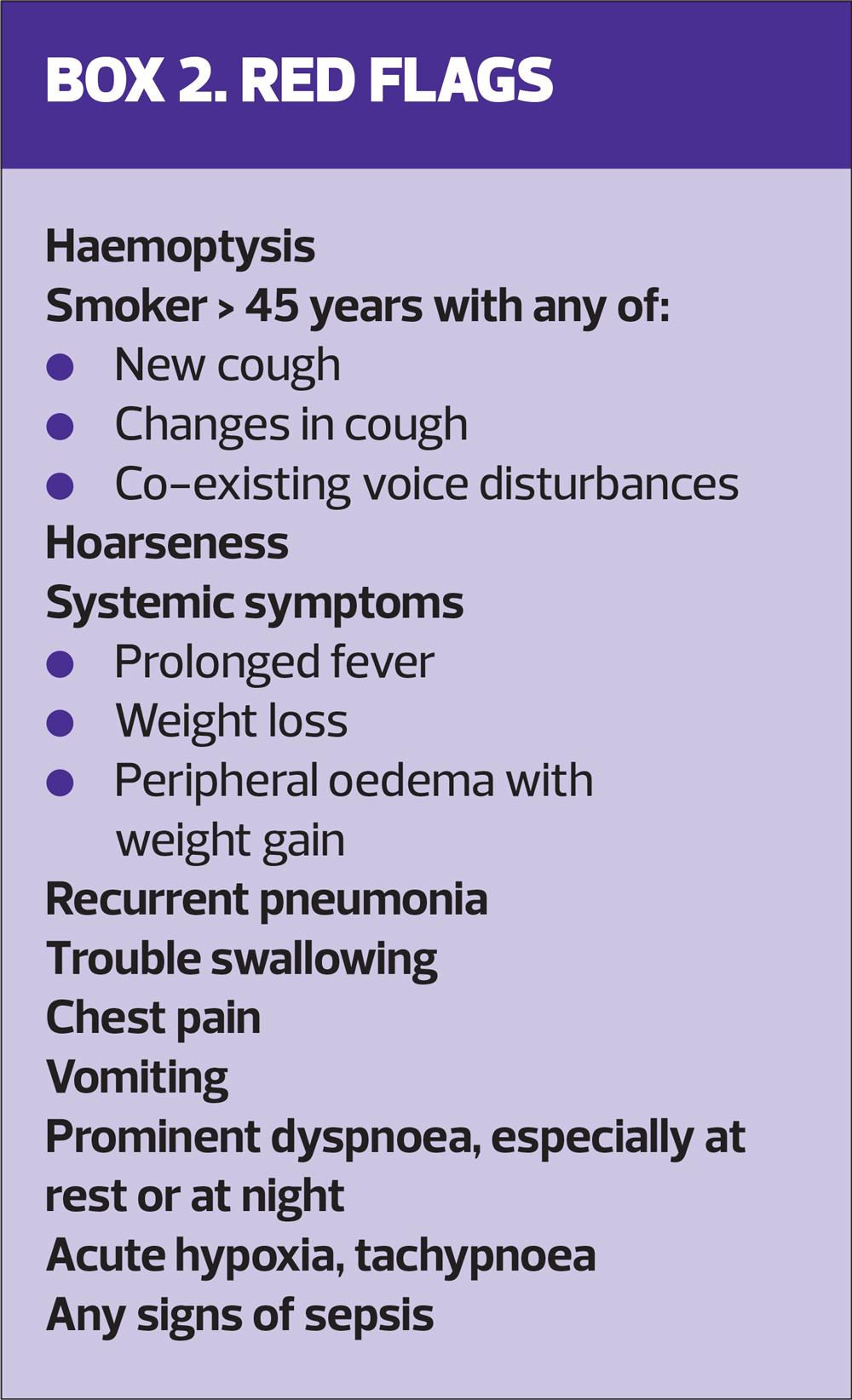 2. Turner R. Red flag refreshers – cough. PulseToday 2019 https://www.pulsetoday.co.uk/clinical-feature/clinical-areas/respiratory/red-flag-refreshers-cough/
