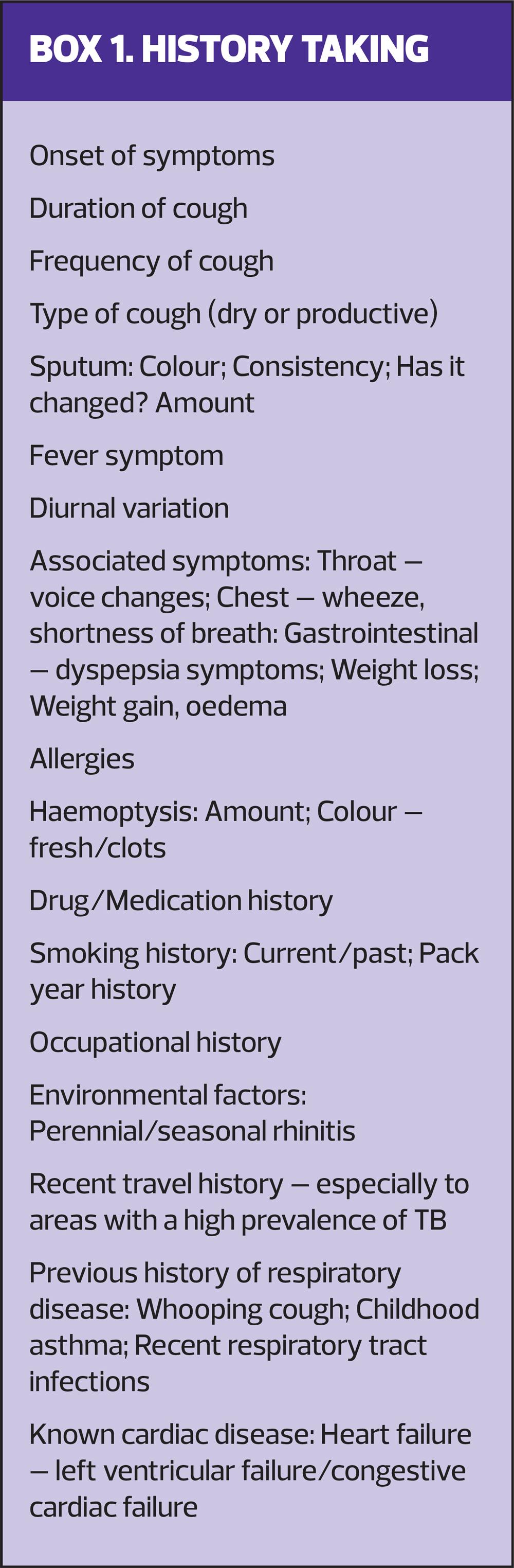 History taking that is specific for a presentation of cough is summarised in Box 1.
