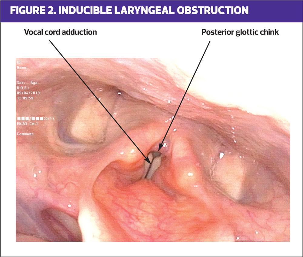 Historically, abnormal laryngeal closure has been referred to using many terms, most commonly ‘Vocal Cord Dysfunction’.3 Such variation in terminology has caused confusion for the understanding of airway mechanics, as well as for the assessment and treatment of the condition. A recent consensus publication from the European Respiratory Society, European Laryngological Society and the American College of Chest Physicians recommend the term ‘Inducible Laryngeal Obstruction.’4 This describes inappropriate laryngeal closure during respiration, with airflow obstruction occurring at the level of the vocal cords, leading to breathing problems.