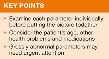 As with assessment of any blood results it is helpful to know why the test was requested: did the clinician suspect a problem, and if so what? When an abnormal results is received it is useful if there is an earlier result to compare the result with, which will give an indication of whether the problem is new, or if the abnormality has been detected previously, and if so has it deteriorated or improved. Once the abnormal result has been assessed, the GP will decide what further action is needed in the event of a grossly abnormal result, but practice nurses can play a vital role in the recognition of abnormal results, a task which will be made easier with increased knowledge and understanding. o
