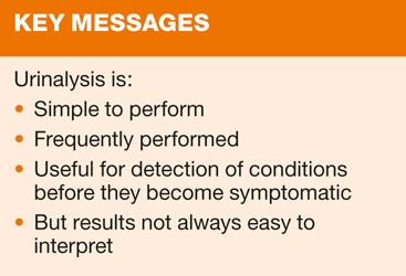 Urine testing is a frequently performed task, which many practice nurses do on a daily basis. The test is easy to perform, inexpensive and although simple, interpretation of the results is not always easy, as there are many factors to take into account when assigning a meaning to any abnormalities detected. The test can provide a wealth of information and can be very useful in the diagnosis of previously undiagnosed conditions.
