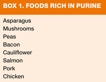 Patient will often present with a cloudy sample of urine and there are several reasons which may account for this. A sample from a female patient may be contaminated with vaginal mucus or epithelial cells or in the presence of a urinary tract infection, pus in the urine will produce the same effect. Cloudy urine can also occur as a result of precipitated phosphate crystals in alkaline urine or may be found in patients whose diet is rich in purine.2 Box 1 lists some foods rich in purine.