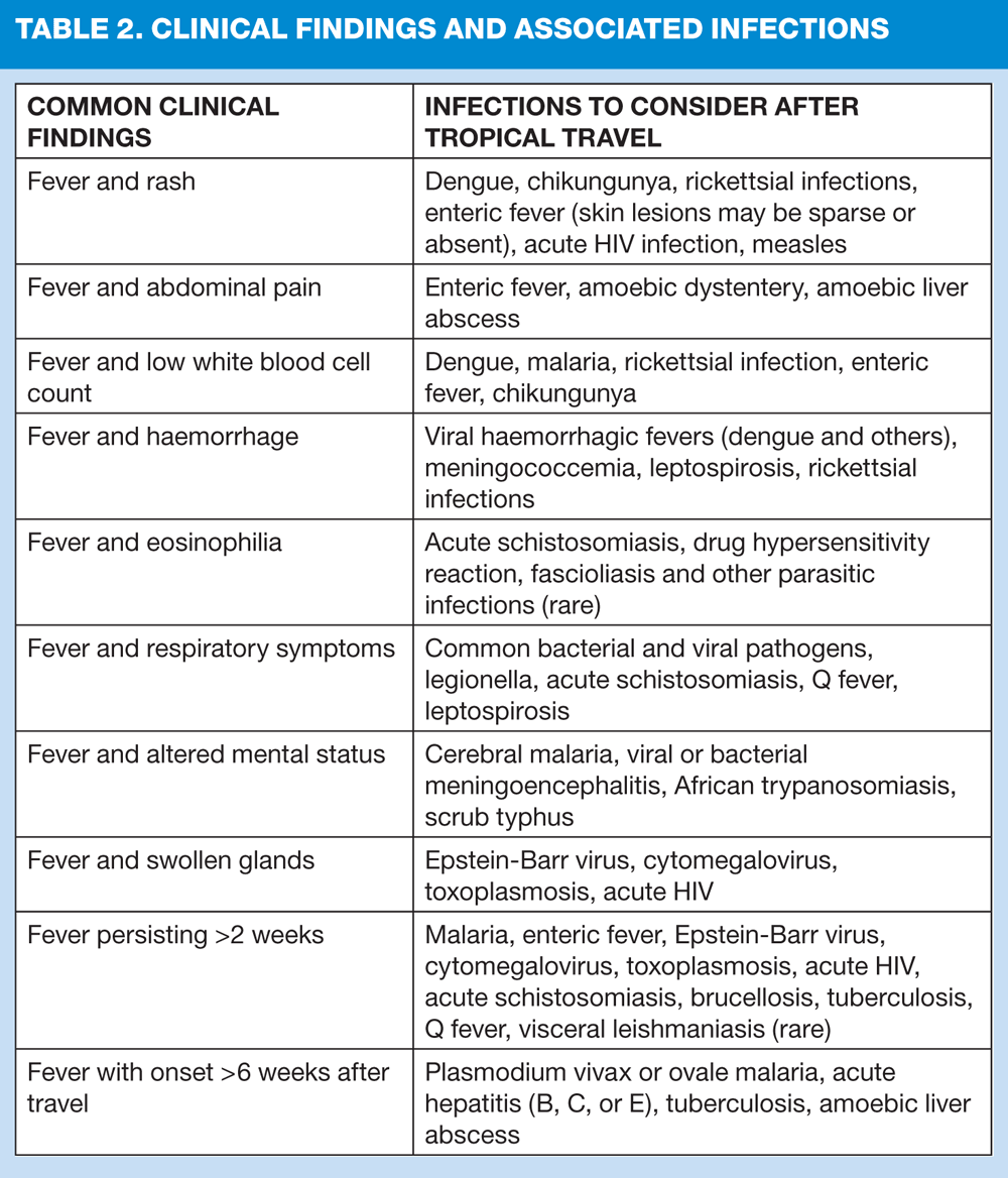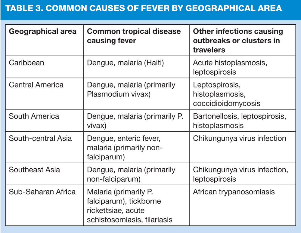 6. CDC (US Centers for Disease Control) Travellers health: wwwnc.cdc.gov/travel/yellowbook/2014/chapter-5-post-travel-evaluation/fever-in-returned-travelers