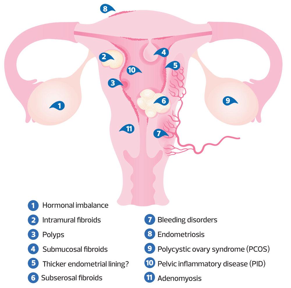 - Non-bleeding related disorders such as liver, kidney, or thyroid disease, pelvic inflammatory disease, and cancer.2