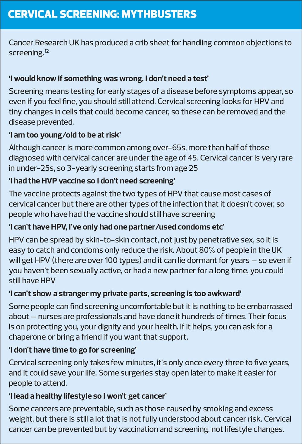 Increasing cervical screening rates: misconceptions, barriers and solutions