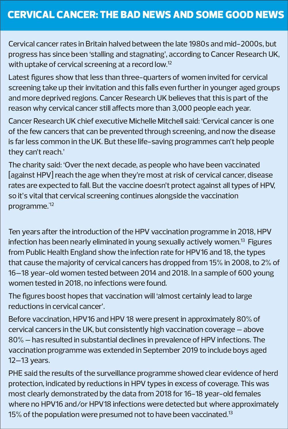 12. Cancer Research UK. Cervical cancer progress falters as screening uptake hits record lows. Press release; 22 January 2020. https://www.cancerresearchuk.org/about-us/cancer-news/press-release/2020-01-22-cervical-cancer-progress-falters-as-screening-uptake-hits-record-lows