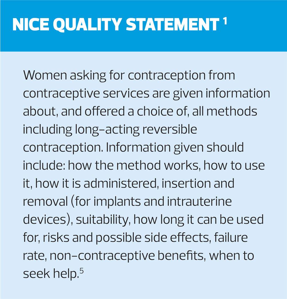 5. NICE QS129. Contraception, 2016 https://www.nice.org.uk/guidance/qs129/resources/contraception-pdf-75545366974405