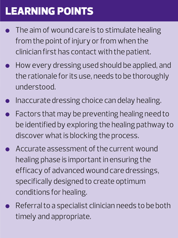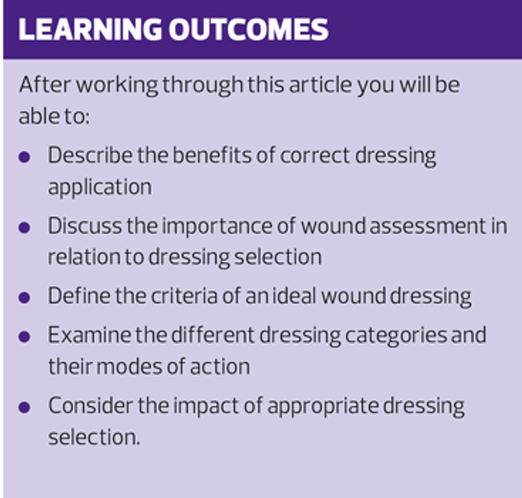 Although dressing selection can be daunting, when they are selected appropriately for the current wound state, and used as instructed, they are very effective. Taking the time to consider what is required for the wound at that moment in time, as well as having knowledge of the type and mode of action of the dressing and the confidence to make any changes, has the potential to greatly improve patient outcomes.