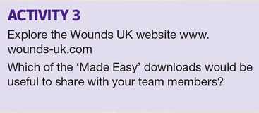 7. Romanelli M, Dowsett C, Doughty D, et al. Position document: Advances in wound care: the triangle of wound assessment. Wounds International. World Union Resources, 2016. woundsinternational.com/wuwhs/view/position-document-advances-in-wound-care-the-triangle-of-wound-assessment