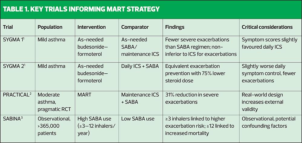 Maintenance and Reliever Therapy (MART) with inhaled corticosteroid (ICS)–formoterol has emerged as a cornerstone of contemporary asthma management. Evidence from randomised controlled trials,1,2 large observational studies,3 and national and international guidelines,4,5 consistently demonstrates that MART reduces severe exacerbations, lowers cumulative steroid exposure, and improves safety compared with short-acting beta-agonist (SABA)-based regimens.