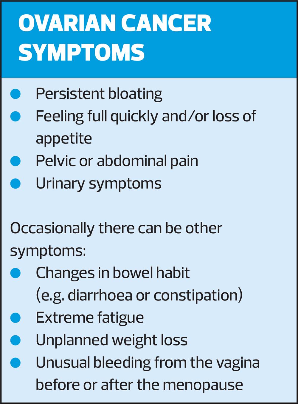 In addition to looking out for the symptoms of ovarian cancer, if your patients mention that the symptoms are…