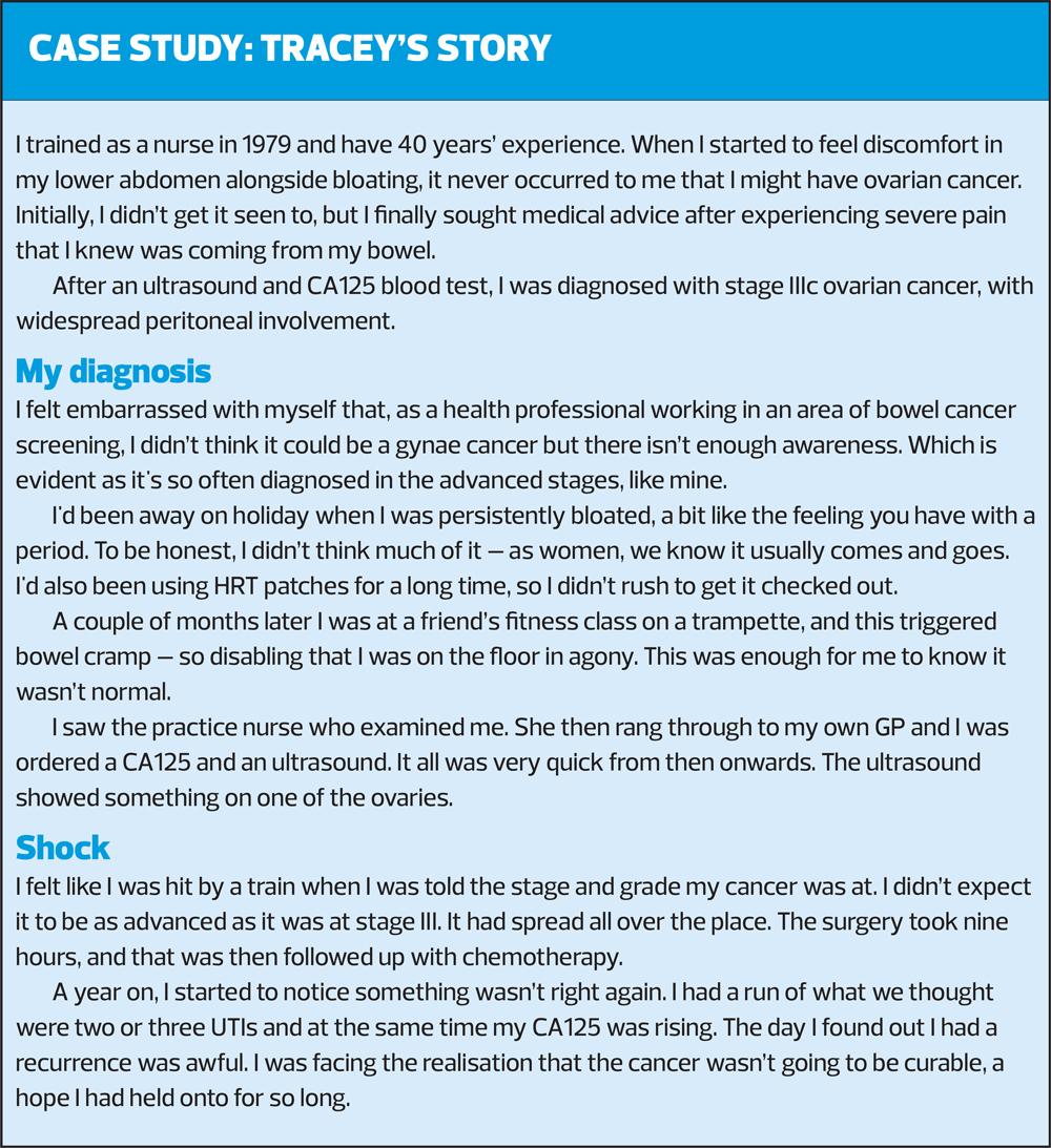 Eleven women die every day from ovarian cancer because diagnosis is often too late.1 Research from Target Ovarian Cancer has highlighted the urgent need for ovarian cancer to be recognised as a significant national priority, and for action in improving diagnosis, treatment and outcomes.2 Early diagnosis saves lives, and GPs and primary care teams play a hugely important role in helping women with symptoms access diagnostic tests quickly.