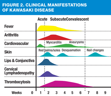 Kawasaki disease symptoms appear in phases. See Figures 19 and 210