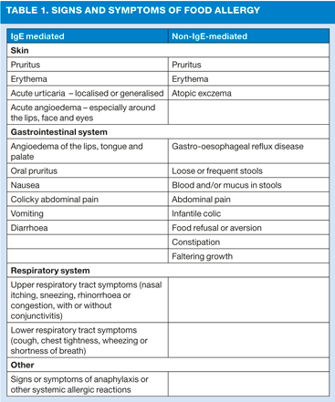 With the paucity of training provided to either nurses or GPs on the diagnosis and management of allergies,4 practice nurses cannot be expected to become overnight experts on the topic. Nevertheless, it is important to be aware of signs and symptoms that should raise the index of suspicion for food allergy, so that appropriate action can be taken.