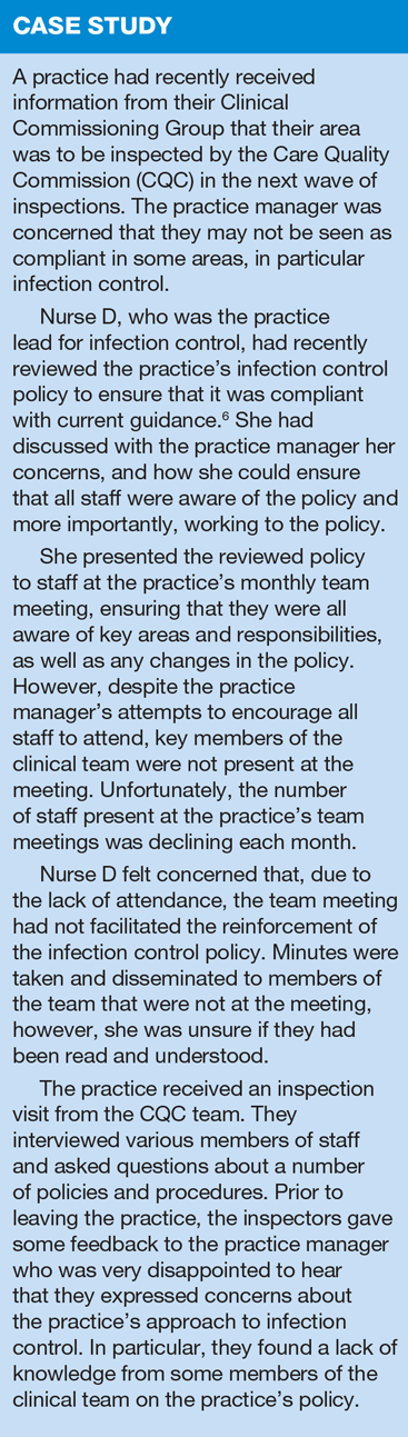 In 2012, the General Medical Council (GMC) and the Nursing and Midwifery Council (NMC) jointly outlined how high-quality, safe patient care not only involves teamwork, but also good communication, leadership and adopting a culture where healthcare professionals can discuss patient safety openly amongst the team and with the patients themselves.2 In order to achieve this, a positive approach to teamwork is required.