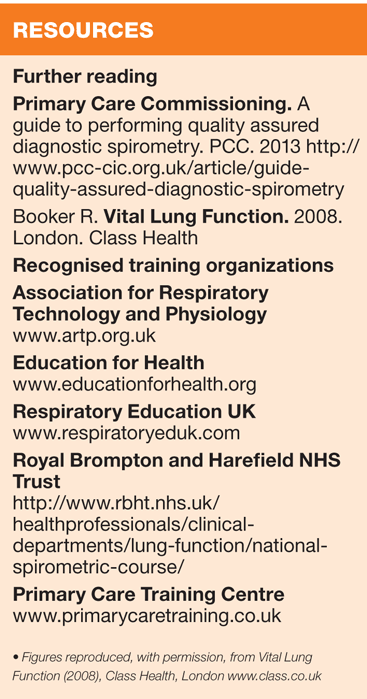 1. Primary Care Commissioning. A guide to performing quality assured diagnostic spirometry. PCC. 2013 http://www.pcc-cic.org.uk/article/guide-quality-assured-diagnostic-spirometry