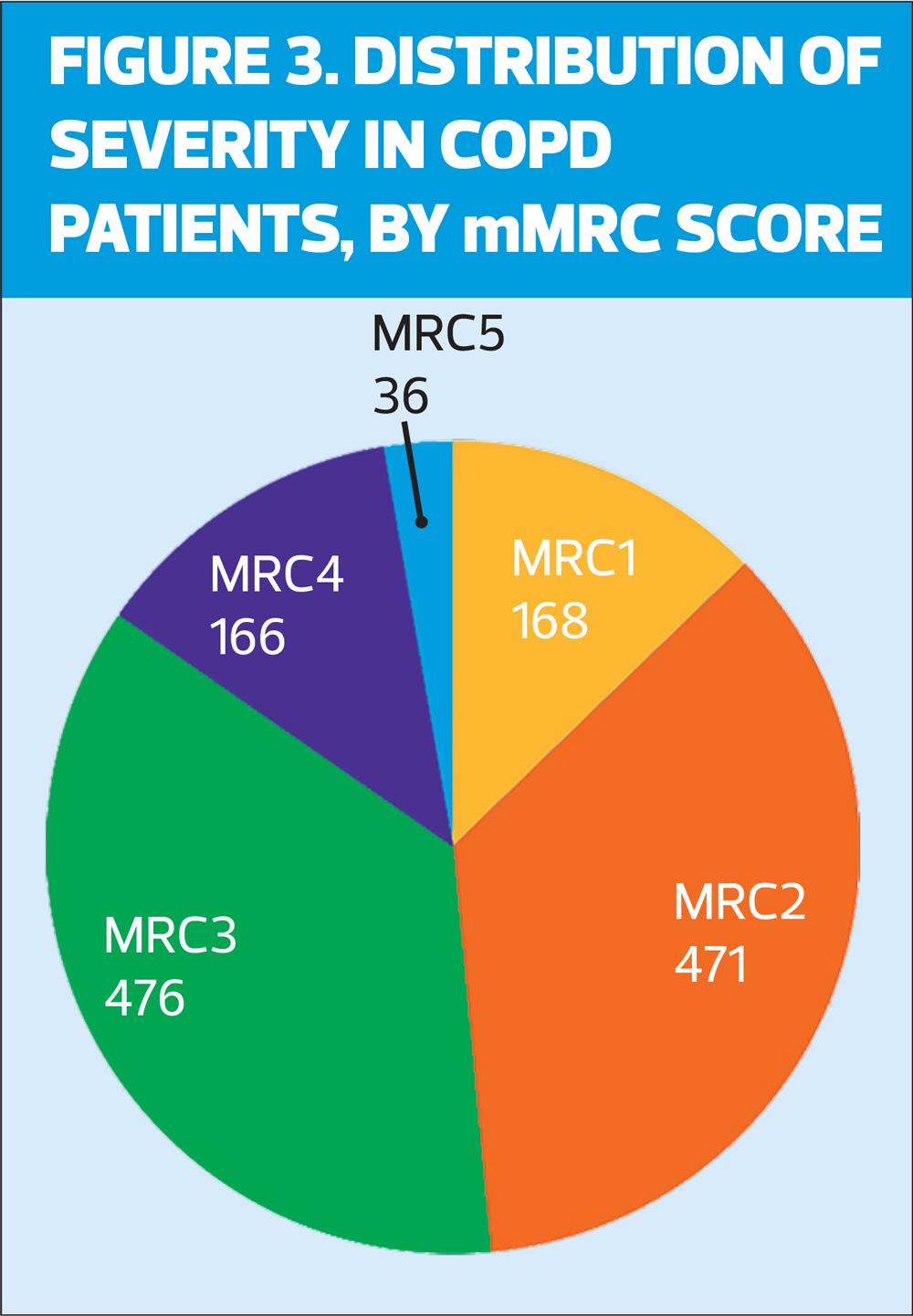 The study found that 4.49% on the COPD register were receiving oxygen therapy although only 10.59% had any documentation of pulse oximetry, and were missing vital information regarding severity of their condition and possible need for referral for an oxygen assessment or further investigation. However 16% of those recorded with MRC 4 or 5 had normal spirometry, suggesting misunderstanding of this stratification system, inaccurate coding, or alternative unknown diagnoses. Only 26% had smoking pack history documented, an important risk factor for COPD development and 483 patients (2.7%) were on dual COPD and asthma registers suggesting poor history taking, probable misdiagnosis, inappropriate prescribing and potential over treatment of some patients. Prescribing data was difficult to interpret because of the use of inhaled steroids for both asthma and COPD with 7% prescribed unlicensed ICS monotherapy without any LABA.
