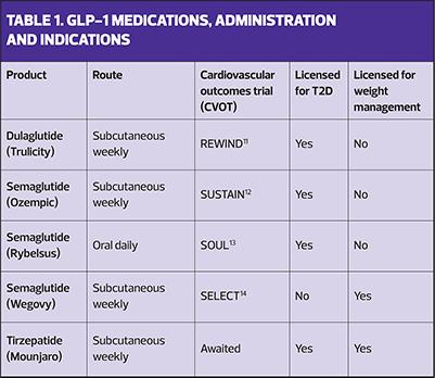 The draft NICE guidelines are out for consultation and await ratification, not least with respect to which GLP-1-based treatments might be prioritised but the key products that are currently available are described here and in Table 1.