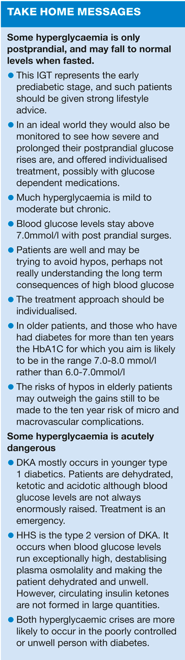 Hyperglycaemia not only has long term implications for the development of complications, but can also pose an immediate threat to life: we aim to clarify precisely what it means, what causes it, what kinds of hyperglycaemia there are, and how they should be managed