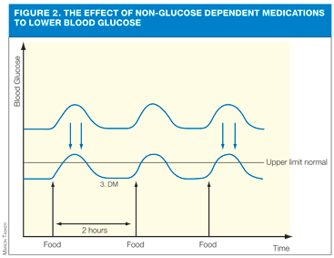 Figure 2 shows the consequences of using hypoglycaemic agents that are not glucose dependent, including injected insulin, suphonylureas and glitazones.