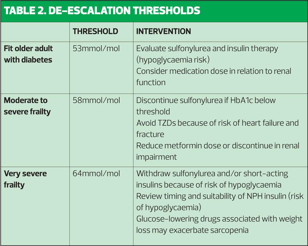 The guidance sets out less stringent targets for frail older adults who are at risk of over-treatment with glucose-lowering medications,2 recommendations for ‘de-prescribing’ – a process of withdrawing inappropriate medications – and reducing the risks of hypoglycaemia.