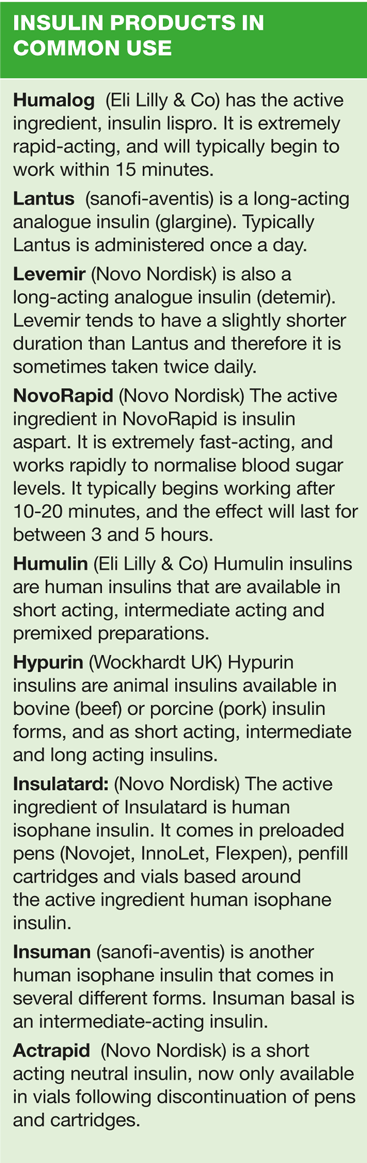 The introduction of insulin in primary care needs to involve active dose titration, a structured educational programme, continuing telephone support and annual care planning including an agreed target HbA1C.2 It also involves frequent self-monitoring by patients who need to learn to adjust doses, understand diet and nutrition, manage hypoglycaemic episodes and acute changes in blood sugar levels, manage injection sites and technique and manage sick days.