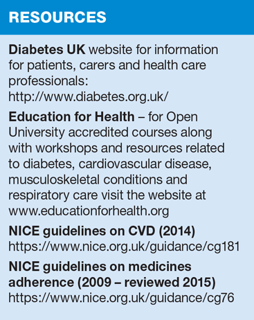 NICE underlines the role of structured patient education (such as DESMOND and other similar courses) as a way of enabling people with diabetes to understand more about their condition along with the rationale for lifestyle and pharmacological interventions. A new recommendation is that the effect of this education is audited. This audit may be carried out most effectively by the team that delivers the education but from a primary care perspective, it does throw up some interesting challenges. How do we measure the effect of education on people’s understanding of the causes and management of diabetes? What happens to people who have not been referred on diagnosis but who might still benefit from attending later in the disease trajectory, especially when places are often limited to people who are newly diagnosed? How do we ensure that the education provided in practice is structured and standardised so that all members of the primary health care team are giving the same key messages? It may be that a priority for 2016 should be to look at how ongoing education is delivered in the practice and consider the resources that are available to patients. This could be a useful part of a reflective exercise for general practice nurses (GPNs) which could be used for revalidation purposes, as well as having a beneficial effect on patients and the practice.