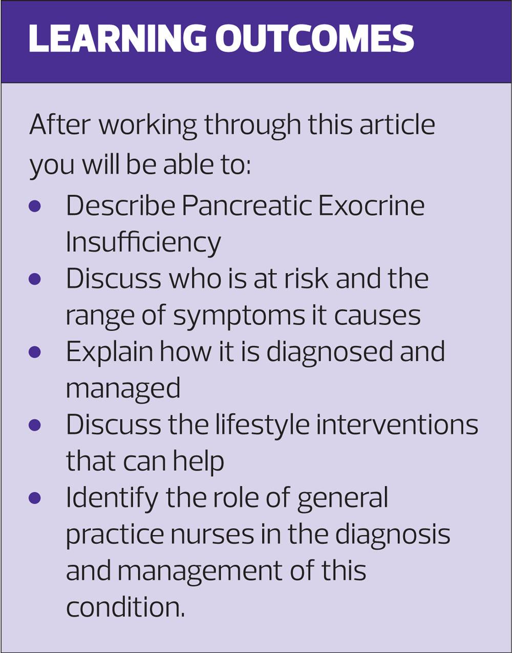 General practice nurses need to be aware of the link between pancreatic exocrine insufficiency and other long term conditions such as coeliac disease and diabetes. But what is it? This article will examine PEI: its definition, diagnosis and management