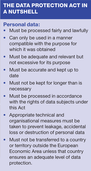 The Data Protection Act,5 (Box 1) also relates to the legal requirement to keep the data we hold on patients secure. In the modern NHS new risks have been revealed in this area, for example: