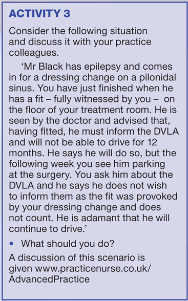 - Informing the DVLA that a patient who is not fit to drive is continuing to do so despite your advising him to inform the DVLA