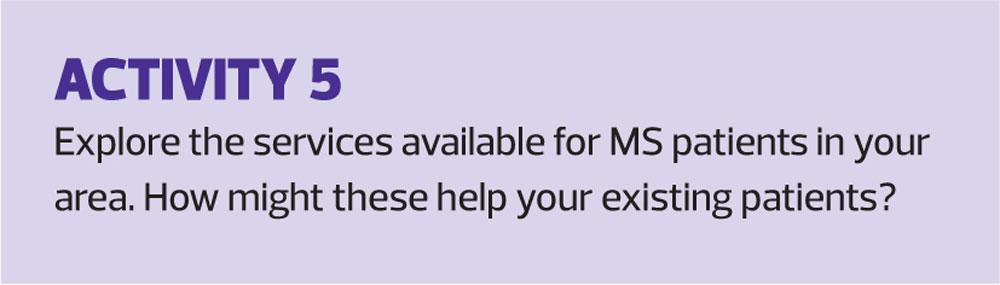 As we all know, most patients will use the Internet to find information about their disease, but this can leave people feeling overwhelmed by the range of advice available. Furthermore, most existing apps for MS haven’t been evaluated, so neither patients nor professionals know what’s available or the validity of information the apps provide. Where possible, guiding your patient through their options will make an immense difference to their confidence and ability to manage overall.