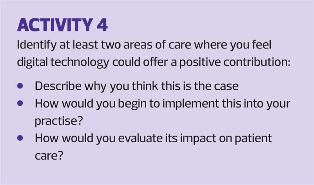 Where useful technologies do exist, nurses can help by promoting them to patients who might benefit, but also to other healthcare professionals involved in their care.
