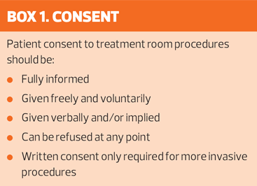 Box 1 highlights the legal requirement of valid consent. The Department of Health‘s 2009 ‘Reference guide to consent for examination or treatment’ provides excellent guidance for patients who lack capacity and also makes clear the law regarding consent of young people under 18 years of age.2 Patients also have a legal and ethical right to privacy and confidentiality and, in turn, a relationship with healthcare professionals built on trust. Whenever there are concerns about patient safety, the sharing of information with other healthcare professionals and agencies may be necessary in line with local and national safeguarding policies.1