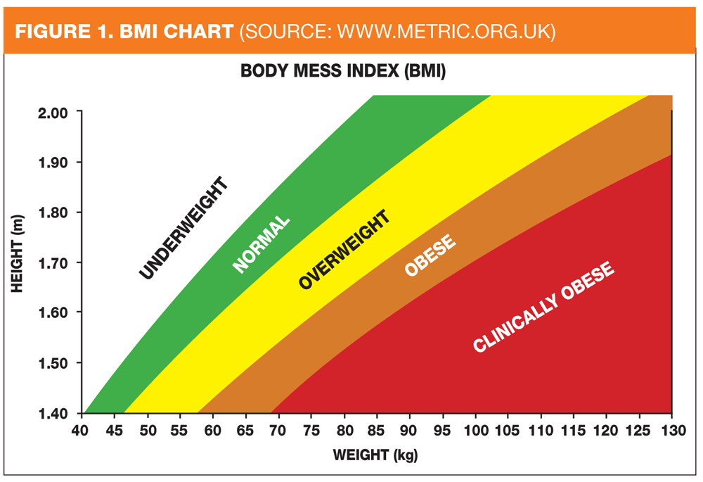 Once the weight and height measurements have been recorded the BMI can be calculated. Most computerised patient record systems have a programme to make the calculation but the BMI can be calculated manually using the BMI formula below or by using a BMI chart (box 1). Depending on the results, the patient can be signposted to the most appropriate service.