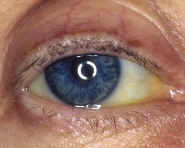 Jaundice starts to become visible when the serum bilirubin is above 35 micromols/litre. Jaundice may be sub-divided into pre-hepatic, hepatic and post- hepatic. The commonest cause of pre-hepatic jaundice in general practice is Gilbert's syndrome, with an isolated rise in bilirubin and no evidence of haemolysis. Cirrhosis and infectious hepatitis will cause a hepatic jaundice, with a mild rise in alkaline phosphatase. Post-hepatic or obstructive jaundice will cause a marked rise in alkaline phosphatase, which may be caused by the presence of gallstones. Malignancies that may cause this problem are pancreatic cancer and cholangiocarcinoma