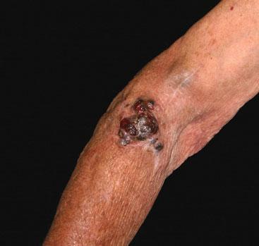 Malignancy may present with very obvious signs such as haemoptyis, rectal bleeding or haematuria. However, it may present more subtly with nail changes such as clubbing. Cancer may metastasise to other organs of the body, and the skin may be affected too, with somewhat atypical looking lesions. Direct invasion through the skin from either primary or secondary lesions may present practical nursing difficulties, as can be seen in some of these images.