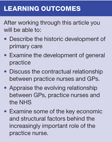 General practice predates the NHS by almost a century and continues to evolve. Practice nursing is relatively new, but now practice nurses are integral members of the primary care team — and their role is still evolving