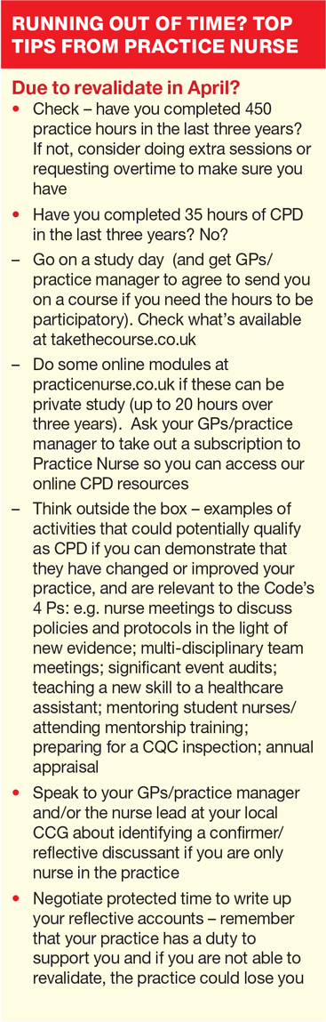 Although you can’t submit your online revalidation application until 60 days before you are due to revalidate, you can start preparing well in advance. During the three years since you last renewed your registration or joined the register, you will need to start building up practice hours and continuing professional development (CPD) time to meet the requirements: 450 hours of practice (or 900 hours if you are a dual registered nurse and midwife) and 35 CPD hours.