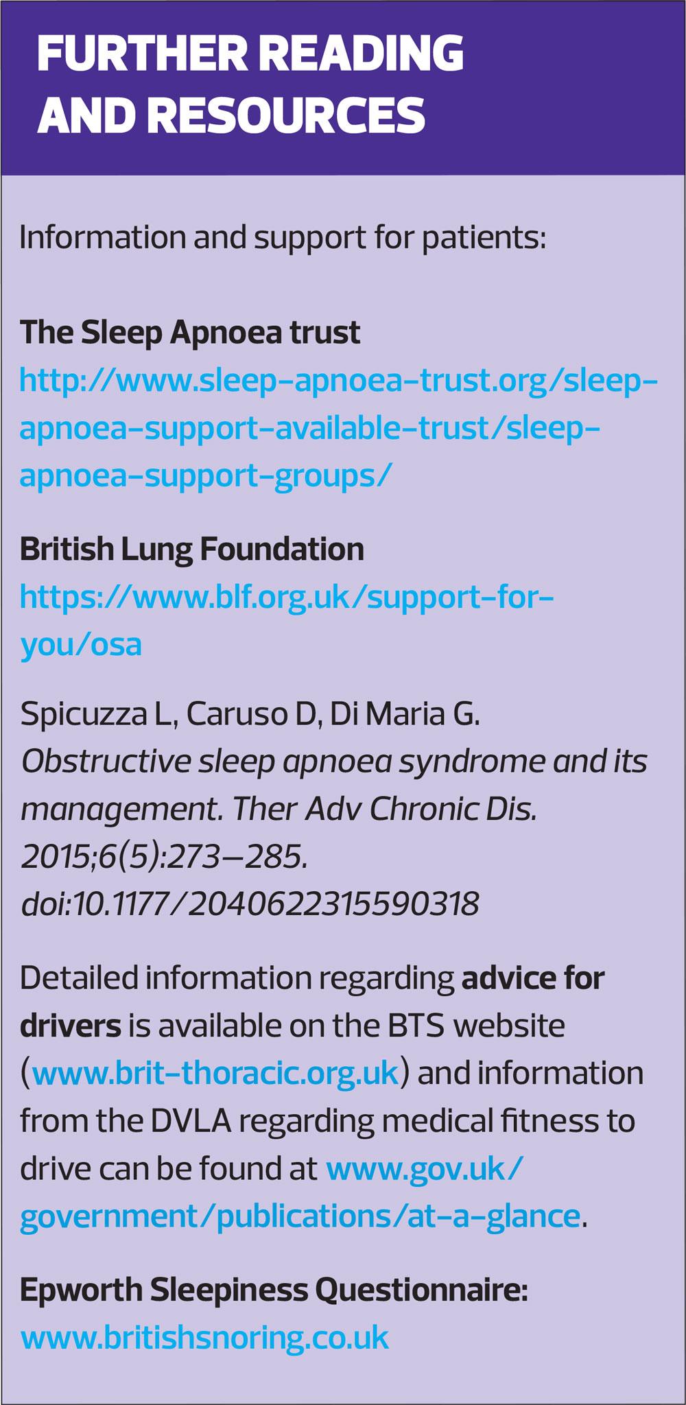 Patients may also benefit from information about support groups that provide self-management advice such as The Sleep Apnoea Trust Association.