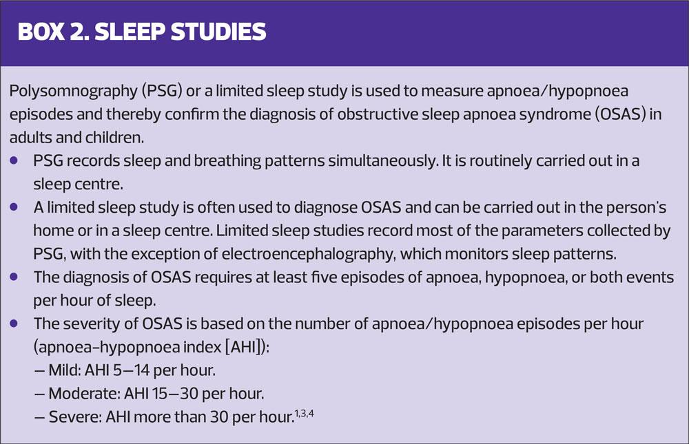 Referral to a sleep centre for sleep studies, (Box 2) is needed for confirmation of a diagnosis of OSAS, and for secondary care treatments, e.g. CPAP. However, sleep services have been severely disrupted during the pandemic, and there are likely to be delays in securing an appointment while centres deal with the backlog.10