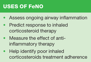 Measuring exhaled nitric oxide also provides an accurate predictor of steroid responsiveness and can therefore guide decisions about treatment. FeNO can also be used as an educational tool for patients to both detect and open dialogue about poor treatment adherence.