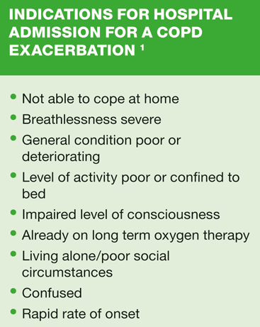 There are, however, some situations ('red flags') where people having an exacerbation of COPD should not be treated at home (Box 2).1