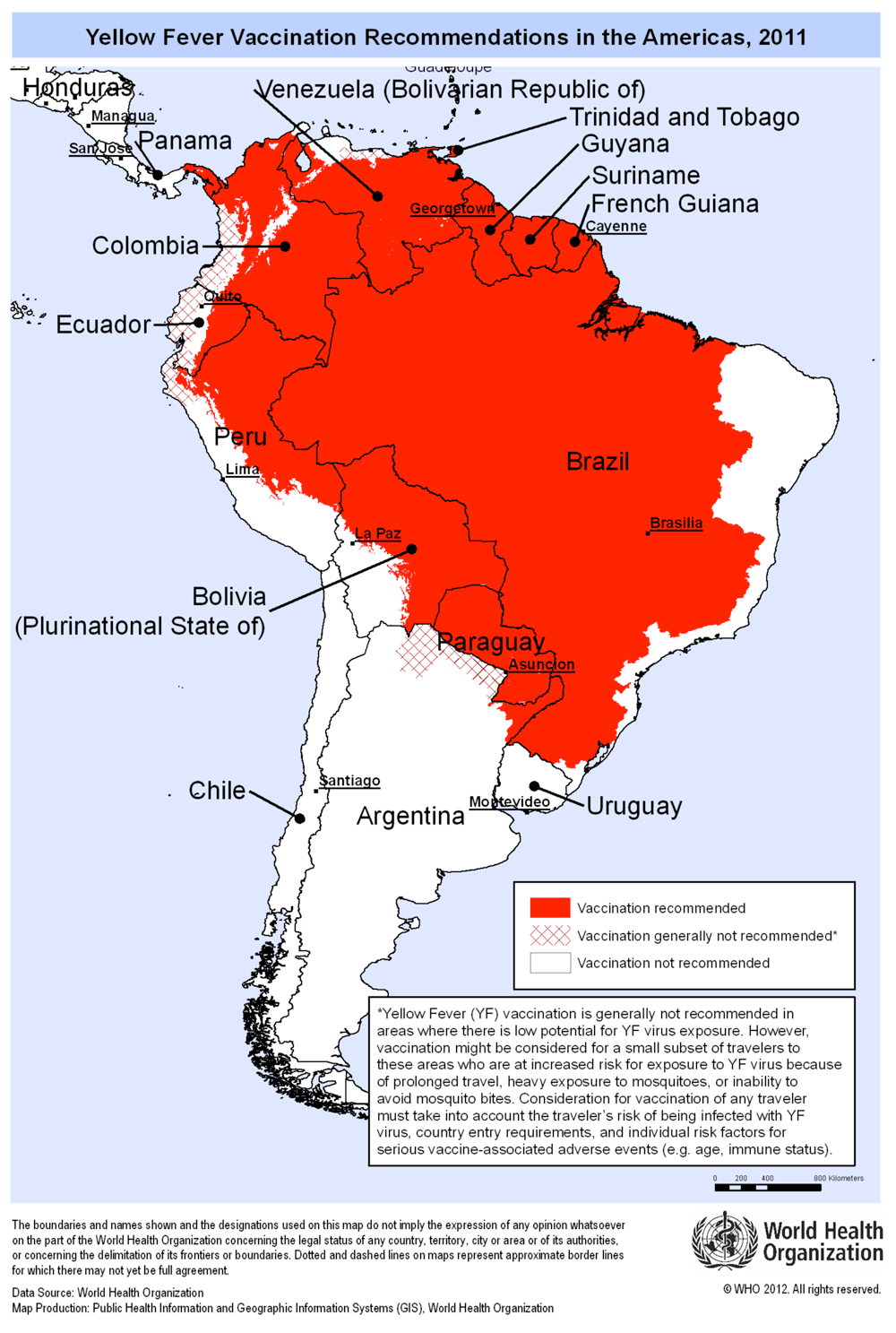 A new item appeared on the NaTHNaC website in January to inform users that the World Health Organization (WHO) had updated the geographical content of the Yellow Fever Vaccination Recommendations in the Africa map, as the Republic of South Sudan became an independent country in 2011. There have been changes to the Yellow Fever South America Recommendations in the Americas for Brazil. It is therefore necessary to download these new maps in colour to ensure you continue to give accurate and up to date information for yellow fever vaccination recommendations. For further information go to http://www.nathnac.org/pro/news/yfmaps_update_220113.htm