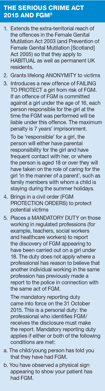 Female genital mutilation: Managing the complications, your safeguarding duties and the Law