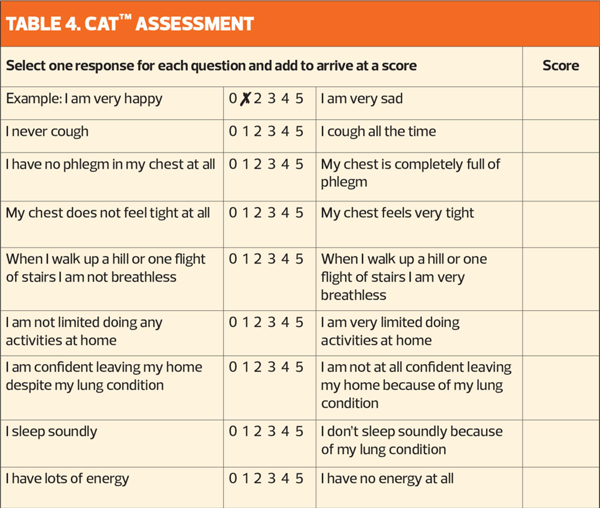 GOLD recommends the use of the COPD Assessment Test (CATTM) rather than the St George's Respiratory Questionnaire (SGRQ) which is too complex for routine clinic use.
