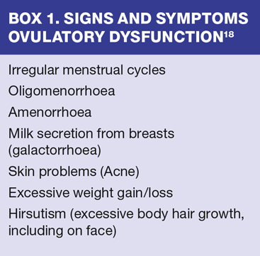The signs and symptoms associated with ovarian dysfunction are summarised in Box 1.