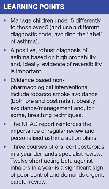 Asthma remains a serious, potentially life threatening condition, yet the recent National Review of Asthma Deaths (NRAD),1 highlighted widespread ‘complacency’ among patients, families and health care professionals (HCP). The review has challenged HCPs across all areas to improve care. The tragic deaths of children (many of which are preventable) are events that should not happen in the modern NHS.1