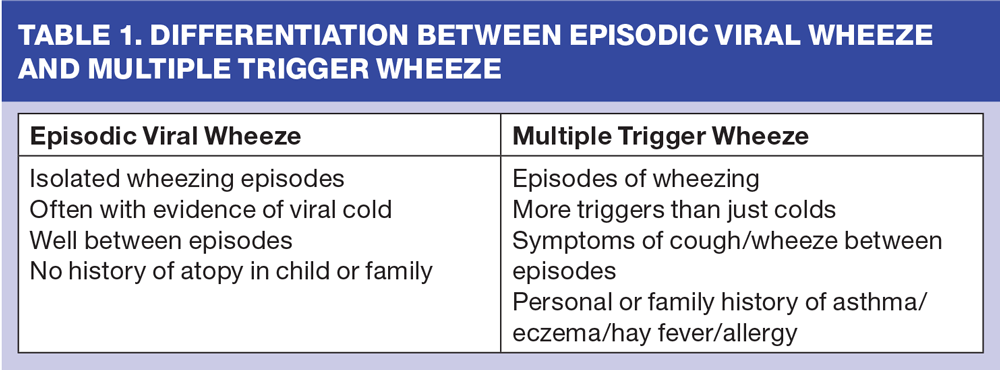 - Multiple trigger wheezers, where the differentiation of when a child wheezes is more blurred. (Table 1)