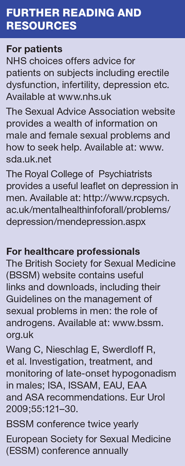 6. British Society for Sexual Medicine. Guidelines on the management of sexual problems in men: the role of androgens. 2010. Available at: http://www.bssm.org.uk/